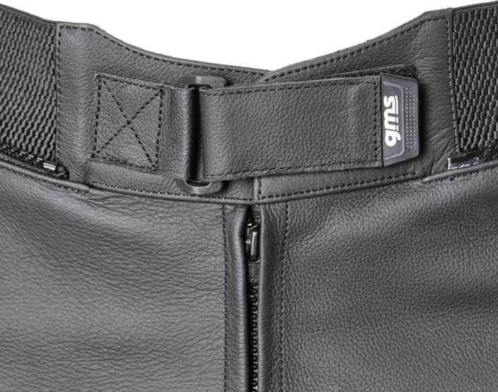 - accordion leather stretch inserts in the lower back and knee area (pants)
