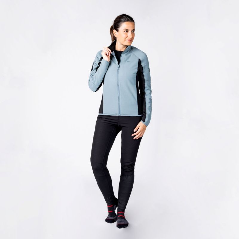 - Mid layer made with fleece and woven ripstop fabric