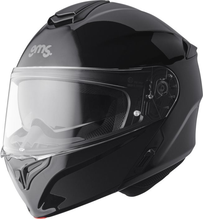 Flip-up motorcycle helmet made of polycarbonate with a transparent, quick-change and scratch-resistant visor with the possibility of adding an additional Pinlock® anti-fog plate, an internal removable sun visor, an enlarged panoramic field of vision and a removable lining. Unfastening and lifting the front face is easy and convenient using a button on the front lower part of the helmet.