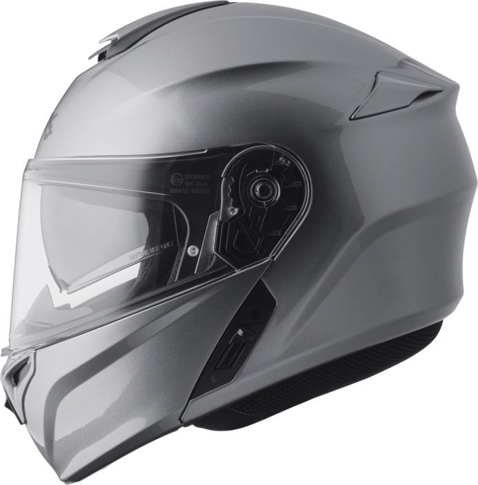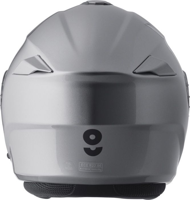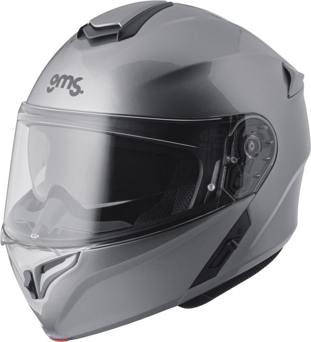 Flip-up motorcycle helmet made of polycarbonate with a transparent, quick-change and scratch-resistant visor with the possibility of adding an additional Pinlock® anti-fog plate, an internal removable sun visor, an enlarged panoramic field of vision and a removable lining. Unfastening and lifting the front face is easy and convenient using a button on the front lower part of the helmet.
