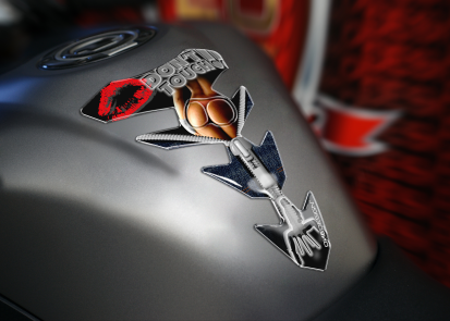Tank pad made of transparent resin and polyurethane, glued to the central rear part of the motorcycle tank. In addition to its protective function, the protector gives the motorcycle a modern and personalized look.