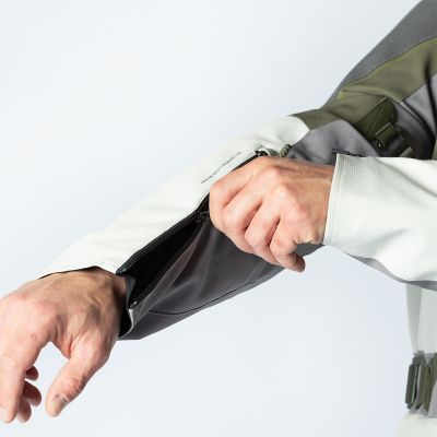 - 4 front pockets (2 waterproof), 1 chest pocket, 1 sleeve pocket