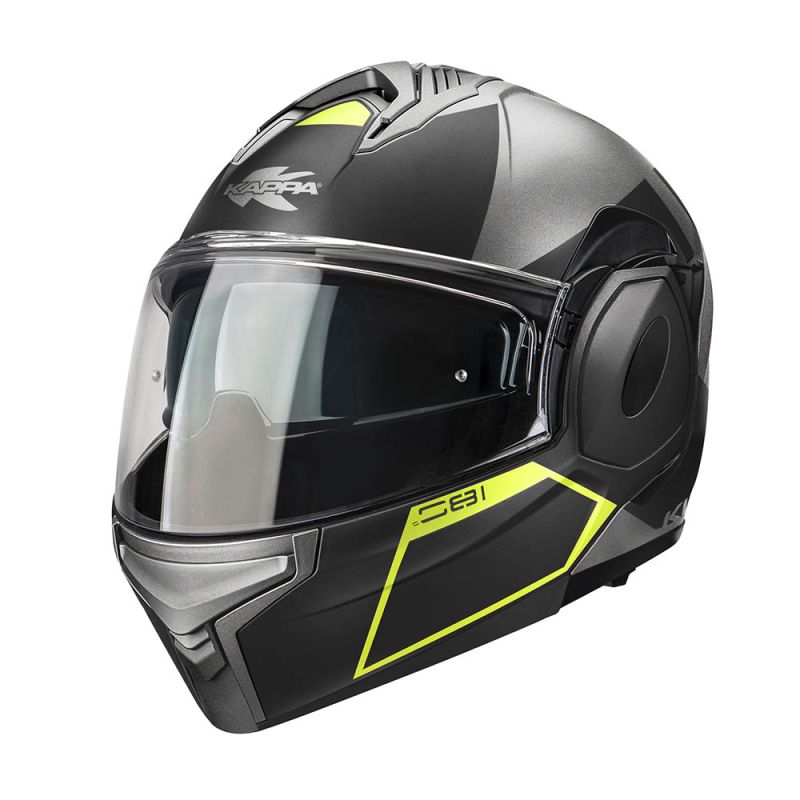 Kappa KV55 предлага уникално удобно и функционално решение за тези, които търсят многофункционална каска, предната част на каската, освен, че се отваря като всички Modular/Flip Up каски, може да се завърти зад каската (Flip Back), като по този начин силно подобрява аеродинамичността и сваля центъра на тежестта. Този модел е изработен от термопластичен материал и има двойна Jet/Full Face хомологация, което позволява използването му в отворен или затворен режим. Сред характеристиките му се откроява бързо сменящ се и устойчив на надраскване външен визьор, подготвен за плака Pinlock® 70 DKS002 (доставя се отделно, виж в Свързани продукти), която предотвратява замъгляването в студени или влажни дни, и тъмен вътрешен слънчев визьор, който улеснява видимостта при условия на силна светлина.
