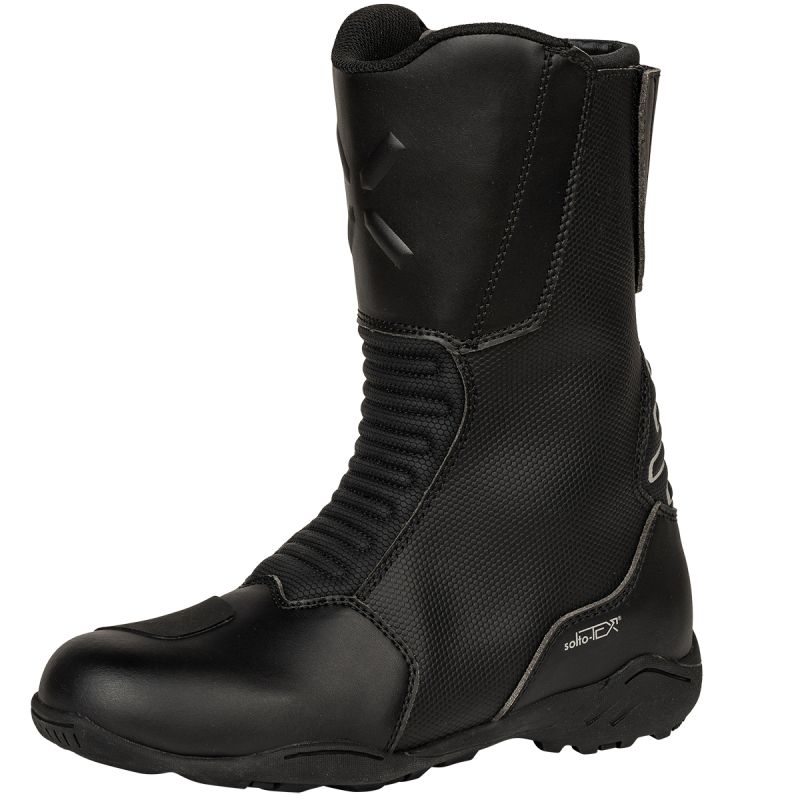 Ботушите Tourster-STX 1.0 са предназначени за мотористи, които изискват комфорт, безопасност и пълна защита от атмосферни влияния при дълги преходи през всички сезони. Издръжливата им външна обвивка от микрофибър, комбинирана с мембраната soltoTEX® (Z-liner), осигурява напълно водоустойчива, ветроустойчива и дишаща конструкция. Удобното закопчаване с двоен цип прави обувката лесна за обуване и събуване, докато защитните вложки за глезена и големите еластични зони тип „акордеон“ осигуряват отлична мобилност и безопасност. Здравата гумена външна подметка, подсилената подложка за превключване на предавките и светлоотразителните елементи ги правят надежден избор за всякакви условия на туризъм и ежедневно каране. Налични са следните размери (избери по-долу):
