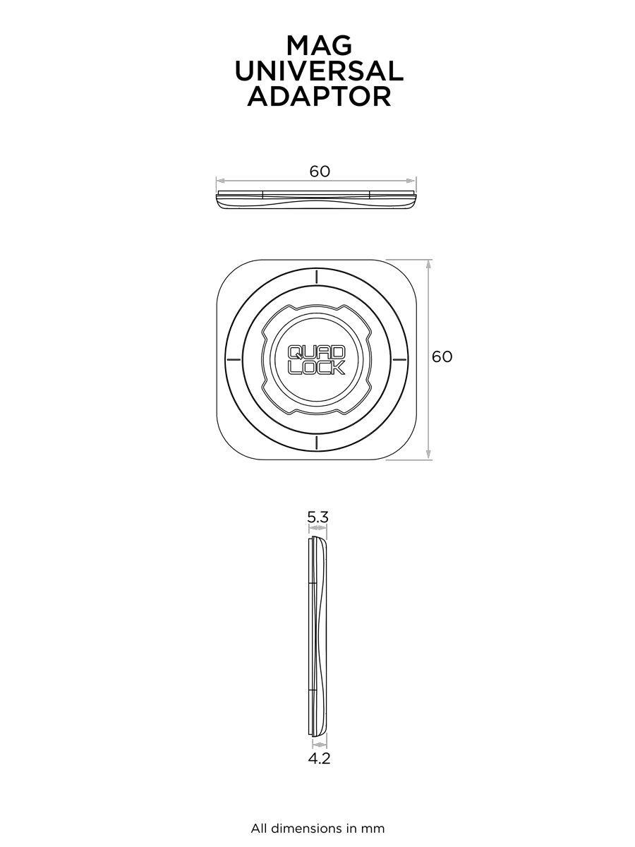 С дебелина само 5,3 мм, универсалният адаптер Quad Lock MAG™ пасва безпроблемно на гърба на смартфони и калъфи.