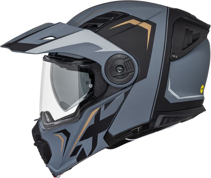 Каска в Adventure стил направена от мултикомпозитен материал, подсилен с армидни и карбонови нишки. Идеално съчетание на Flip Up, Jet и каска с козирка. Може да се ползва с и без козирката. 3D прозрачен визьор с голям панорамен ъгъл, интегриран вътрешен слънчев визьор и включен Pinlock® Max Vison визьор против изпотяване.