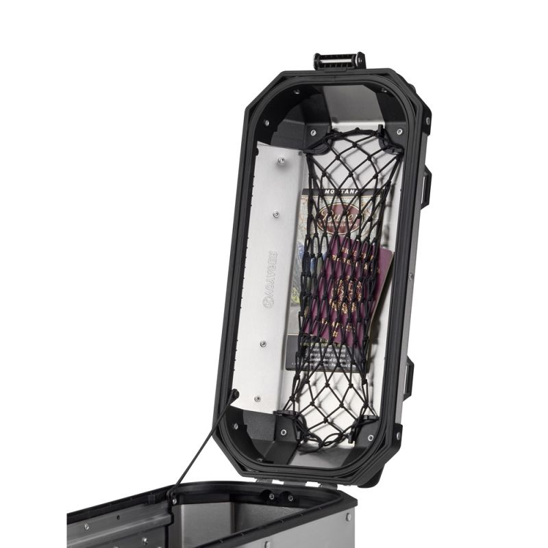 Обем 33 л. Скосен за ауспуха. Система за фиксиране MONOKEY® CAM SIDE, съвместима със странични багажници KLO _CAM, KLOR _CAM, KL _CAM, KLR _CAM.