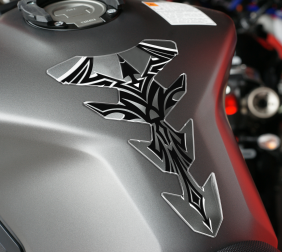 Универсален протектор за резервоар изработен от прозрачна смола и полиуретан, залепва се на централната задна част на мотоциклетния резервоар. Освен защитна функция протекторът придава модерен и персонализиран вид на мотоциклета.