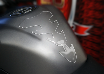 Универсален протектор за резервоар изработен от прозрачна смола и полиуретан, залепва се на централната задна част на мотоциклетния резервоар. Освен защитна функция протекторът придава модерен и персонализиран вид на мотоциклета.